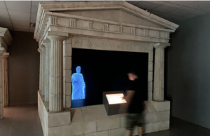 Dernier exemple, vous êtes propriétaire d’un musée. En plus de pouvoir utiliser les displays précédemment évoqués pour mettre en valeur les pièces du musée, pourquoi ne pas utiliser l’hologramme pour incarner des personnages. Cela peut aussi bien être un personnage historique concourant à la mise en valeur d’une partie de la scénographie, qu’un hologramme de guide, présent à l’entrée, qui interagira avec les visiteurs en leur donnant des informations par exemple.