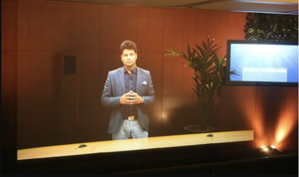 Autre possibilité, dans le cadre de votre meeting annuel vous souhaitez présenter vos vœux à vos collègues. Cependant, retenu à l’autre bout du monde vous ne serez pas en mesure de faire votre intervention. Deux possibilités s’offrent à vous : enregistrer une vidéo qui sera diffusée lors du meeting sur un écran tout ce qu’il y a de plus classique, ou intervenir via votre hologramme – en live ou non – comme si vous étiez vraiment là. La deuxième possibilité bien que plus onéreuse semble nettement plus séduisante et aura beaucoup plus d’impact.